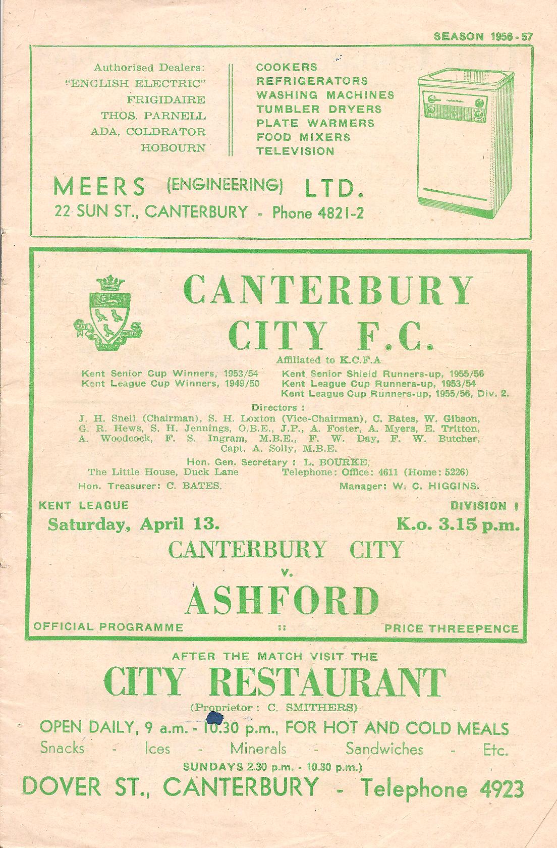 1956/57 13 Apr 1957 Canterbury City (A) Kent League Division 1 1-3 --- Programme
