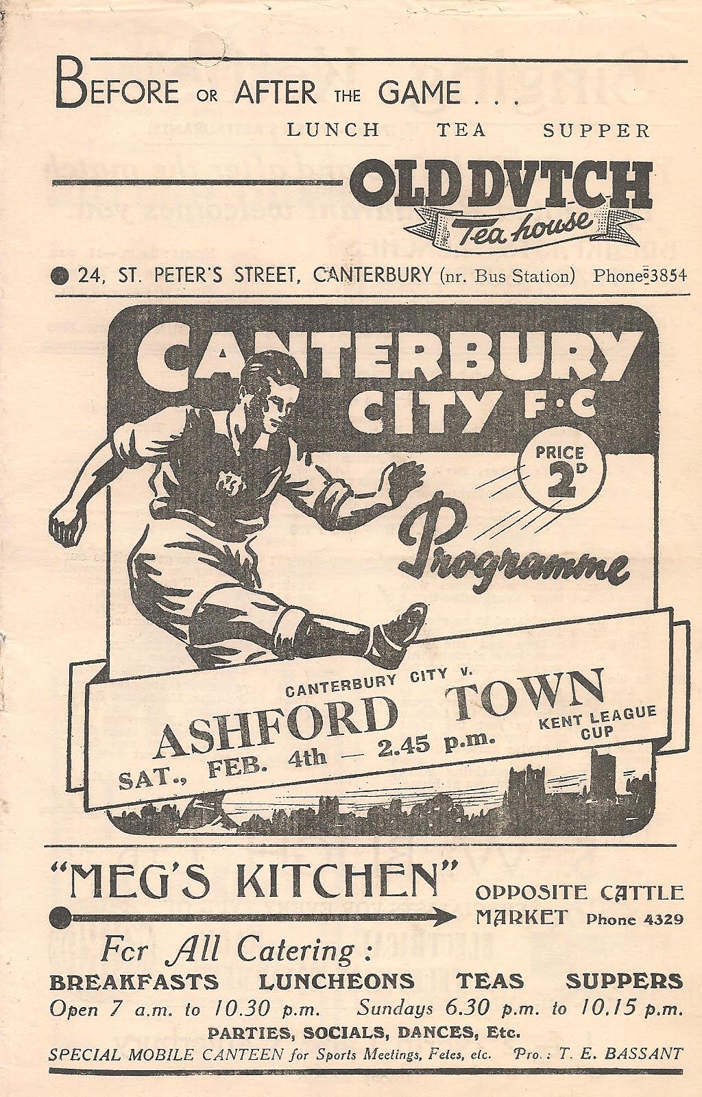 1949/50 04 Feb 1950 Canterbury City (A) Kent League Cup 2-4 --- Programme
