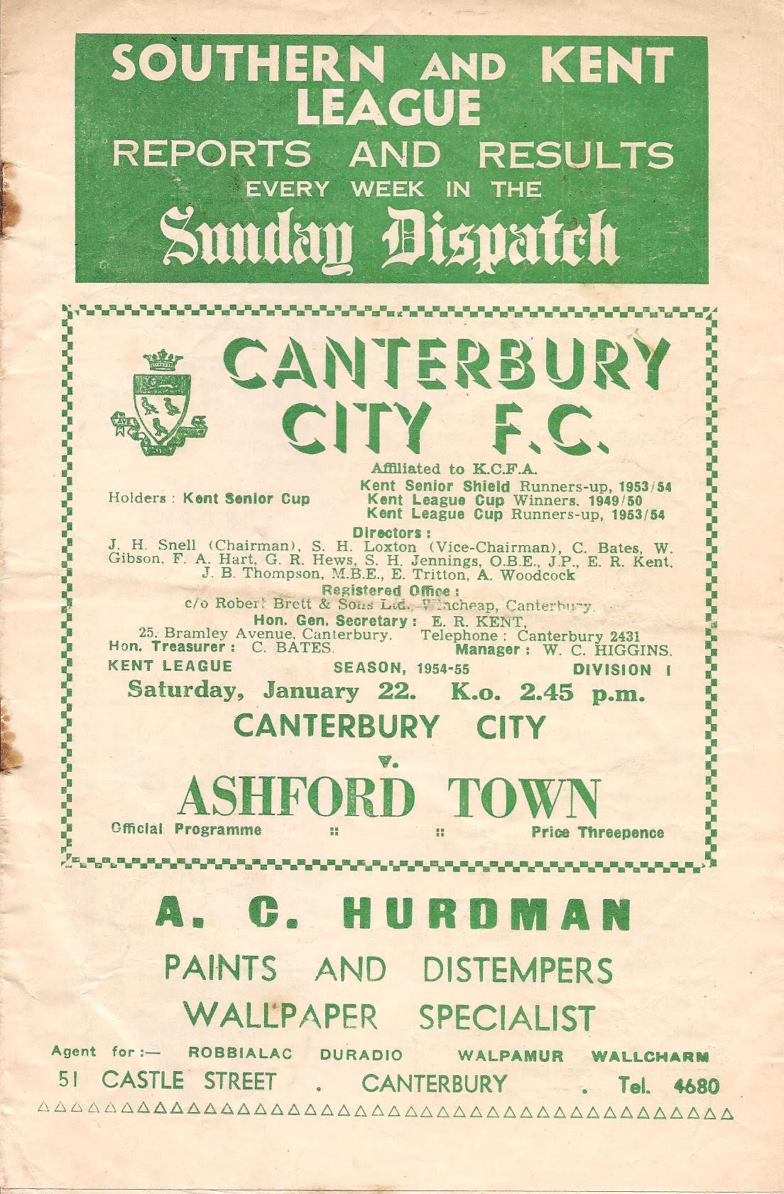 1954/55 22 Jan 1955 Canterbury City (A) Kent League Division 1 1-3 --- Programme