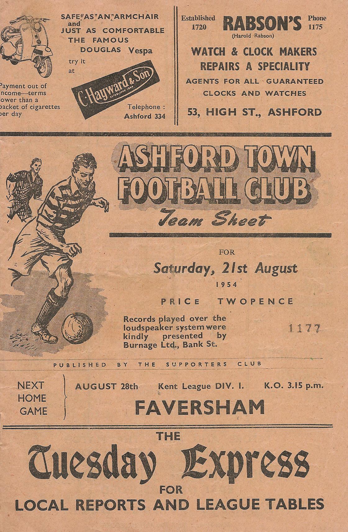1954/55 21 Aug 1954 Canterbury City (H) Kent League Division 1 2-1 3,000 Programme