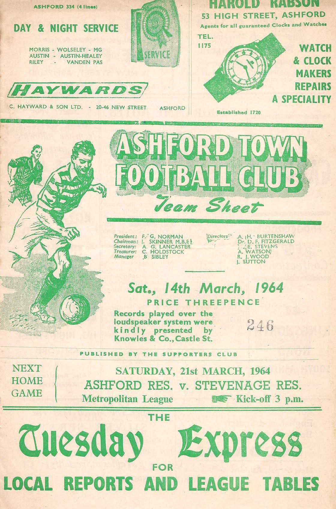 1963/64 14 Mar 1964 Canterbury City (H) Southern League Division One 2-1 419 Programme