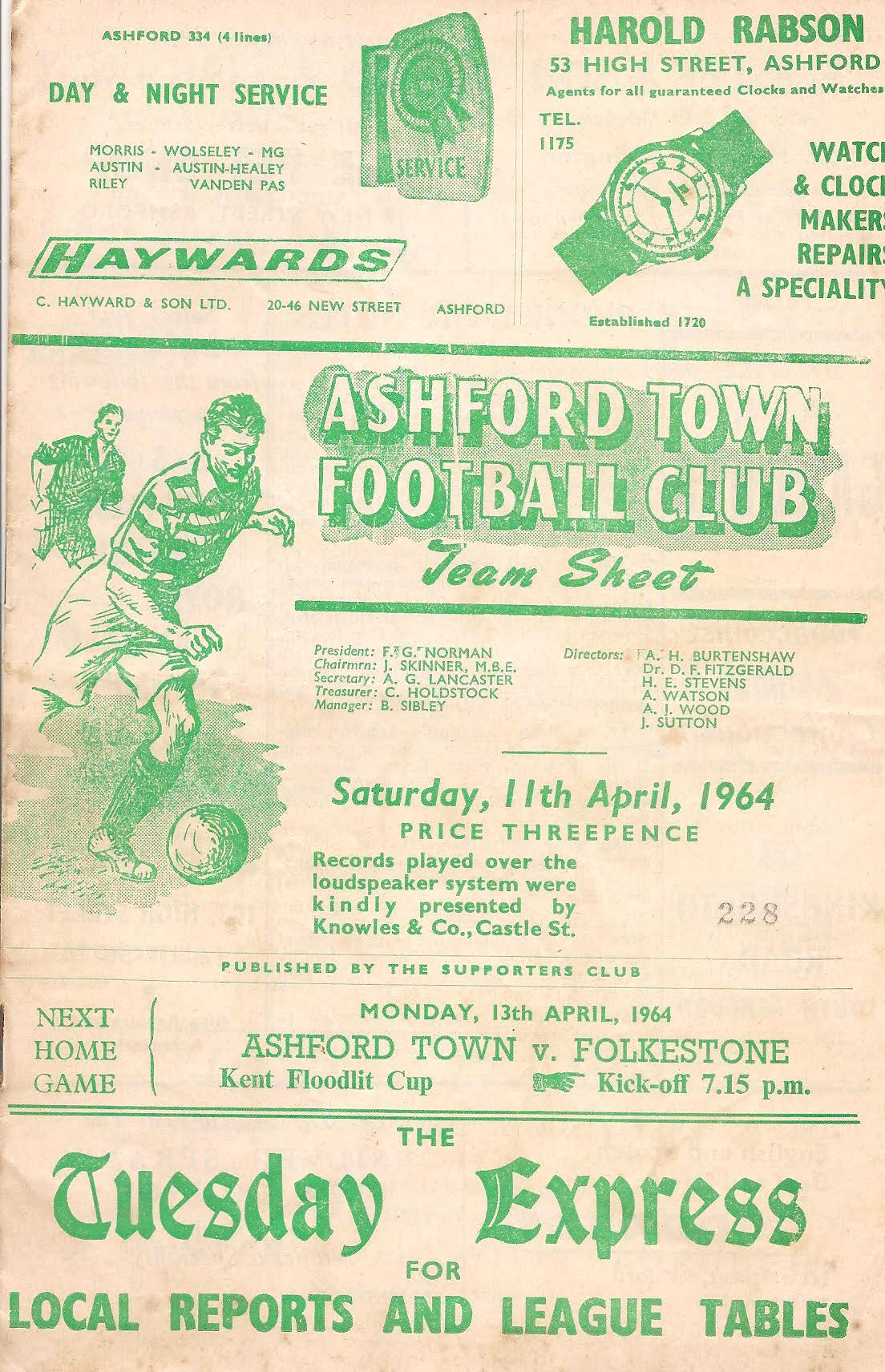 1963/64 11 Apr 1964 Clacton Town (H) Southern League Division One 1-3 559 Programme