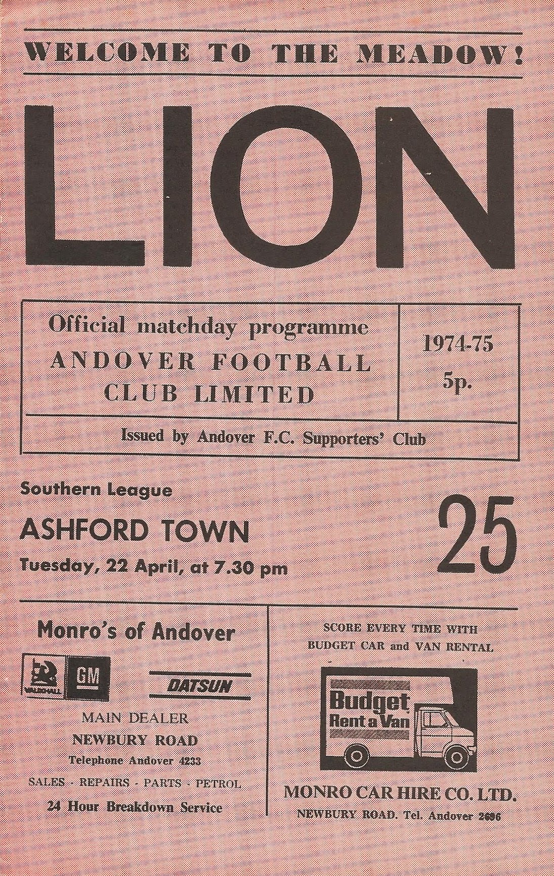 1973/74 02 Apr 1974 Andover (H) Southern League Division One South 1-2 351 Programme