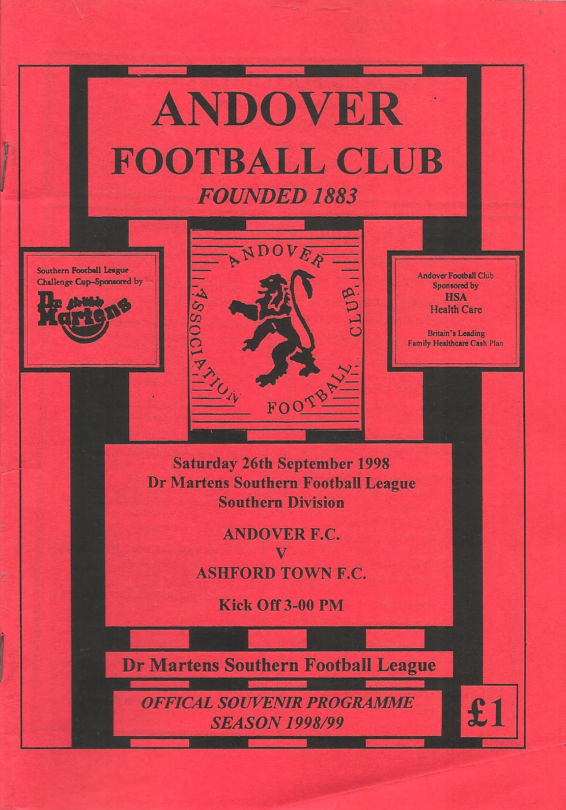 1998/99 26 Sep 1998 Andover (A) Southern League Division One Eastern 5-1 125 Programme
